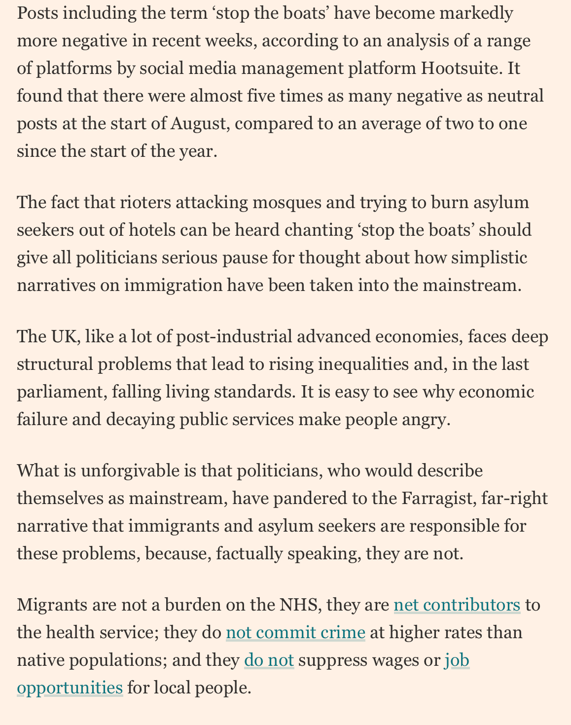 To the extent there was a unifying theme behind the riots, no matter how flimsy - or just wrong - it was immigration. Or, rather, anti-immigration. Please do not nod along sympathetically to those who say that immigration is a big problem.